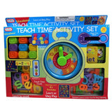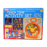 Details: Funtime teach time activity set comes with complete alphabet, teach time clock, lower case letters, flash cards and colourful plastic numbers. This learn to count, read and tell time set is a one stop shop for kids 36 months and older.