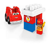 • 5 big building blocks for building a fire station, 1 friendly rolling fire truck and 1 cute Block Buddy firefighter