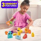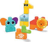 Mega BLOKS Sensory Toys for Toddlers, Rock n Rattle Safari with Building Blocks Elephant, Giraffe and Lion, Endorsed by Fisher-Price