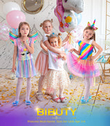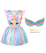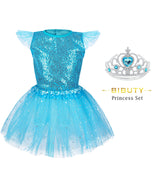 • Girls Costume Trunk for 3-6 yr: Is your little girl obsessed with princess and princess dresses, but want to feel special with her princess friends on the dress? BIBUTY girls dress up clothes, a hit for imaginative play time with 4 sets of matching princess dresses with elastic waistbands, sequined tops, princess crown, girls wing and hairband. Girls costume in very nice gift box, great as a gift for little girls.