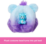 • Kids can dress and style Barbie doll by reversing the costume top to find a super-soft fleece jacket with a fun print -the costume head turns into a bed for the mini Care Bears friend, too