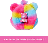 • Kids can dress and style Barbie doll by reversing the costume top to find a super-soft fleece jacket with a fun print -the costume head turns into a bed for the mini Care Bears friend, too