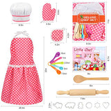 Kids Cooking Baking Set 17Pcs, Kids Chef Role Play Costume Set - Chef Hat and Matching Pink Apron Children Dress up