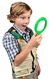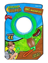 Details: With strong magnification, this big magnifying glass will allow kids to peer into tiny worlds. Watch insects or zoom in on tiny details in nature. The Big Magnifier includes an EZ grip and a carabineer. Clip it to a backpack, belt loop, or shirt pocket. Our rugged design is great for kids on the go. Get up, get out, get Nature Bound! Made from plastic so it's safe for kids.