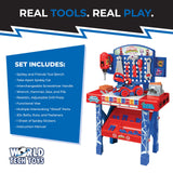 • Full Workshop Built for Young Builders– With 55 construction toys including a drill press, hammer, saw, and screwdriver, children discover how each tool works and when to use it in real-world building and repairs