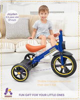 KRIDDO Kids Tricycles Age 2 Years to 5 Years, 12 Inch Puncture Free Rubber Wheel w Front Light, Adjustable Seat Height, Gift Toddler Tricycles for 2-5 Year Olds, Trikes for Toddlers, Blue