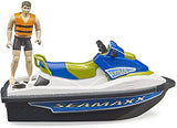 Details: To many, holidays at the seaside are still a synonym for relaxation. Sun, sea and sandy beaches are factors for a nice holiday. Water craft are a common feature on many beaches. They are hired out to holiday makers as well as used by coast guards. The new BRUDER personal water craft features an unsinkable design to prevent any capsizing and it can accommodate two bworld figures. The rider has already been fully equipped so adventures on the water can immediately begin.