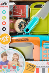 Kitchen Deluxe Set, Toy Chef, Mini Electric Microwave With Foods Set, Blue Combo