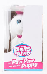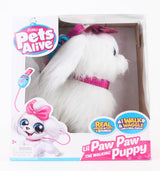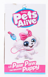 Details: Who is the fluffiest, cutest and most glamorous puppy in the world? It's Lil' Paw Paw! This well-loved classic design with a modern twist is joining the Pets Alive family. This Maltese is made for cuddling and her blue eyes sparkle almost as much as her perfect pink bow and collar. Lil' Paw Paw walks forwards and backward and barks just like a real puppy!