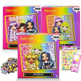 • Rainbow High Premier 100 Pc Puzzle Set for Kids - Rainbow High Party Supplies Bundle with 3 Rainbow High Puzzles, Pimki Pops Stickers and More (Rainbow High Party Favors).