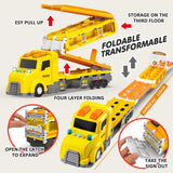 • CREATE A ROAD RACE: The truck unfolds to more than 43.3 inches in length .Opening the catapult competition function, two tracks, which can be played by a single player or multiplayer competition. A good interaction toy for boys and girls.