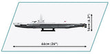 Details: The USS TANG is an American Balao-class submarine from the Second World War. The ship's armament included 24 torpedoes, an anti-aircraft gun and two machine guns. The maximum tested operational depth was 180 meters. It was launched on August 17, 1943. On October 24, 1944, the Tang was sunk during its fifth patrol. The sole commander of the unit was Richard O'Kane, who, along with eight sailors, survived the ship's catastrophe and remained in Japanese captivity until the end of the war. Statistics indicate that the USS TANG was the most successful submarine in the Pacific. It sunk between 24 and 31 enemy vessels. The model of the famous submarine was entirely designed with Polish COBI construction blocks in a sensational model scale of 1:144! The set consists of 777 elements and includes an accessory in the form of a detachable side plating of the hull, under which there is a block-built model of the engine. The perfectly reproduced USS TANG model measures 66 cm in length. All graphic elements are permanent prints that do not wear off even during intense use. Accessories such as the US flag, movable artillery barrels and turbines increase the realism of the model. The USS TANG can be beautifully displayed on the included block base, which includes a plate with the name of the ship printed on it. The ship will be an ideal gift for every fan of military and marine history. It will look great on a desk, bookcase or shelf with other military collectibles. Build history, piece by piece, with COBI!