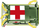 Dodge WC 54 US field ambulance model kit in green army camouflage. The assembled model has an opening front door, a shovel mounted on the right side hinge and an opening double-leaf rear door. The headlight cubes glow in the dark. The kit also contains a figure of an American paramedic-driver. You can get a Cobigames collector's card by simply cutting out the instructions.......