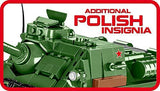 Details: The SU-100 was a Soviet SPG commissioned in 1944. The genesis of this model involved the need to strengthen self-propelled artillery at the end of the war. The newly constructed D10 - 100 mm cannon was mounted on the slightly modified hull of the popular SU-85. In the period 1944-46, about 4,500 units of this vehicle were produced. The SPG was very popular, serving in dozens of armies around the world. Several countries still keep the SU-100 on standby. The SU-100 SPG model is entirely designed with COBI building blocks. The inclusion of many awesome pad prints has enabled the vehicle to be faithfully reproduced. The set does not contain stickers at all, only prints! And the prints do not scratch or smear even during heavy use. The model is equipped with efficient crawler traction, a movable gun and openable hatch. Under the service flap there is a detailed motor. The set includes blocks with Soviet and Polish markings to choose from, another innovative and fun feature COBI brings to the set. The set is complemented by a figure of a soldier with a Mauser rifle, a cap and a red banner. The easy-to-read manual contains a list of blocks and statistics that you can use in the free COBI Historical Battle Game. This COBI kit is ideal for the construction of dioramas reproducing the Eastern Front. The SU-100 is the perfect gift idea for anyone of any age and a great start to your COBI construction set adventure.