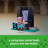 • 3-part building toy for kids – Includes a workplace with an anvil, furnace, grindstone and cauldron, an armor display room with a chest, and a Minecraft Nether portal with swinging doors