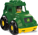 Details: Product Description Little builders can roll out for the harvest when they build and play with this John Deere tractor. Toddlers can place their Block Buddies driver in the truck and head out for a big day on the farm. Then, they can use the blocks to build directly on the truck. The perfect fit for little hands, the blocks are easy to grip and easy to stack, helping to develop fine motor skills, creativity and imagination. From the Manufacturer Get your little farmer's hat strapped on tight as he takes to the fields in his John Deere Tractor by Mega Bloks! The John Deere Tractor has a removable pronged roof that lets your little farmer build on top, or reveal a driver's space for his included little tractor buddy! It's also a great storage space for building blocks or whatever else their imagination can fit in. Ideal for children ages 1 to 4!