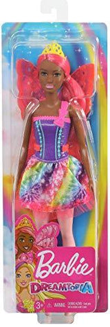 Details: Fairy dolls from Barbie Dreamtopia inspire young imaginations to take flight with dazzling wings and colorful fashions fit for a fairytale adventure! This Barbie fairy doll wears a sparkly bodice and skirt with a rainbow print and butterfly details. Translucent wings with a touch of color spark storytelling and fairytale dreams, and a matching tiara can be worn in her pink ponytail to complete the look. It's easy to play out dreams real and imagined with Barbie because when you enter Dreamtopia, you wake up to a world where dreams become reality! Fairytale lovers can collect all the Barbie Dreamtopia dolls and toys to build out the world and let their dreams set sail. Each is sold separately, subject to availability. Dolls cannot stand alone. Colors and decorations