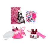 • Includes mini fashion doll, real fashions, shoes, shoebox, accessories, hat box, bottle, hairbrush, garment bags, doll stand, and reusable package playset.