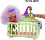 Details: With Cave Club dolls and playsets, kids can travel back in time and discover epic storytelling adventures with their favorite prehistoric characters -like Fernessa, the first babysitter! Fernessa doll has everything she needs to rock her babysitting gig, including a crib with an adorable dinosaur-themed mobile that spins to spark sweet dreams. When nap time is over, clip Cave Tot Furrah doll onto the rocking dino-horse and give her a push to rock and ride. Smaller accessories let kids play out everything from snack time to story time, and two dolls in neon-bright looks inspire storytelling. Adventurers ages 4 years old and up can collect other Cave Club dolls and toys to make history with the whole crew! Each sold separately, subject to availability. Colors and decorations may vary.