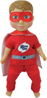 Details: Wonder Crew was developed by a licensed therapist to promote social and emotional learning, build confidence and imagination, and empower boys to see themselves as caring, creative and strong people. Wonder crew combines the adventure of an action figure with the emotional connection of a stuffed animal to give children a best friend! he's an awesome sidekick and confidant who will go everywhere your child goes there's limitless action-packed, loving, imaginative times ahead! the 15" buddy has a smooth vinyl head, arms and legs, and a soft huggable body! he comes with a superhero outfit, cape and mask, plus a matching cape and mask for the child because it's "adventure through friendship!"