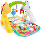 Details: The Fisher-Price Newborn-to-Toddler Play Gym has three ways to play as your baby grows. This convertible play gym takes your baby through the rainforest during tummy time, on an adventure with the hanging pals while they sit, and on a roll with the ball chute during stand & play! With more than 10 activities and toys, and 20 minutes of music and "dancing" lights, this infant gym is wildly fun for your growing little one. Where development comes into play Sensory: Colorful lights and fun music engage your baby's developing visual and auditory senses. Fine Motor: As your baby grasps and interacts with the animal toys and colorful balls, they're strengthening their dexterity and hand-eye coordination. Gross Motor: Those little muscles will get a big workout as your baby pushes up during tummy time, reaches for the toys, and chases after the balls!
