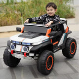 This is a kid-friendly electric ride-on vehicle, often resembling a car or jeep. Common features include a parent-operated remote control, built-in music, and battery-powered functionality for safe and enjoyable driving experiences.