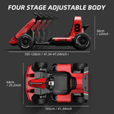 • Go Kart for Kids-The electric go kart is designed to be the perfect pedal go kart for big kids, the custom ergonomic seat is equipped with a seat belt for a comfortable sitting position. The adjustable car body length can accommodate to kids in different ages