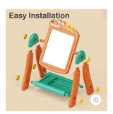 This adjustable 3-in-1 easel is designed for toddlers, featuring a double-sided drawing board with a blackboard on one side and a whiteboard on the other. It encourages creativity and fine motor skills through drawing, painting, and writing. The easel includes painting accessories to support various art activities. Its sturdy, child-safe construction ensures stability during use, while the adjustable height adapts as your child grows, making it a versatile and educational addition to any playroom or classroom.