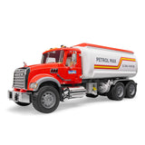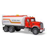 Details: The mack Granite tanker truck is BRUDER's most recent addition to the mack fleet. It represents a particularly appealing combination of cab with chrome-look features and a fully functional tank. In addition to the opening doors, the cab features numerous options, such as the opening bonnet and the folding outside mirrors. New re-developed, fully functional tank body also brings about a host of new functions for our young tanker truck drivers. Fill water into the integrated tank. Build up pressure using the manually operated, compressed-air pump and operate the locking lever to drain the water through the hose using the draining unit. Bruder offers a truck tank trailer (item no. 03925 sold separately) as an ideal supplement to perfectly match this appealing tanker truck and form a vehicle combination with a length of almost one metre. Bruder also offers numerous bworld toy figures for the mack Granite tanker truck. They can access the rear of the vehicle via the ladder to inspect the tank from the top. This 02827 is also compatible with the light and sound module (item no. 02801 or 02802 sold separately).