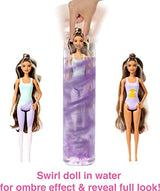 • ​To start the reveal, fill the tube with warm water, place the doll inside and swirl her around -- the water changes into 3 pastel colors for a magical ombre effect!