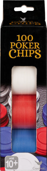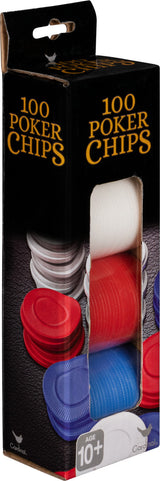 100 red, white, and blue plastic Poker chips. Great to use as replacement chips, or to add to your current set.